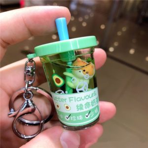 New Bubble Tea Cat Keychain Creative Milk Tea Cup Liquid Crystal Quicksand Sequin Key Ring Bag Pendant for Women Bag Keychain