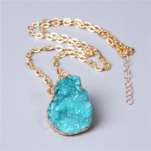 Metal chain healing energy necklace for women Dyed Natural crystal agat druzy crystal Minerals gem stone pendant charm necklace