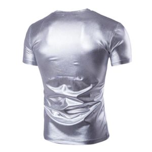 T Shirt Men Shiny Silver Metallic Night Club Tshirt Men’s Casual Harajuku Streetwear Short Sleeve Slim Tee Shirt Homme Camiseta