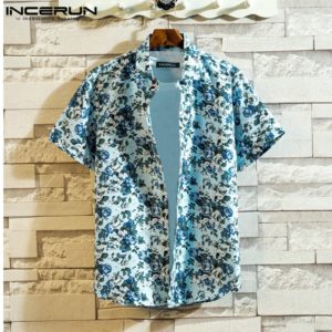 INCERUN Summer Men Floral Printed Shirt Short Sleeve Lapel Button Breathable Casual Vacation Hawaiian Shirts Men Camisa 2020 3XL
