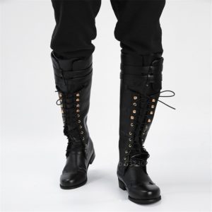 Viking Pirate Men Medieval Shoes Lace Up Black Boots Knight Cosplay Retro Steampunk Renaissance Costume Gothic Archer Ankle Shoe