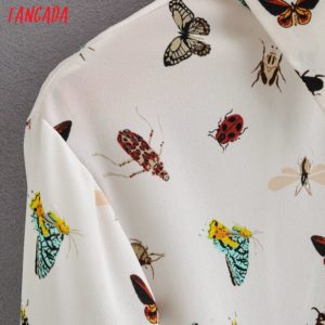 Tangada women retro animal print chiffon blouse long sleeve chic female casual loose shirt blusas femininas 1F75