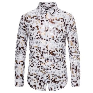 Shiny Colorful Printed Black Mens Long Sleeve Shirts Ropa De Hombre 2020 Fashion Bronzing Men Dress Shirt Camisas Para Hombre