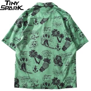 2019 Hip Hop Shirt Streetwear Men Hawaiian Shirts Graffiti Skull Tree Harajuku Summer Beach Shirt Green Tops Short Sleeve Casual