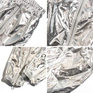 Spring Thin Hip Hop Women Metallic Silver Running Pants Long Zip Casual Harem Trousers Elastic High Waist Bottom Sport Joggers
