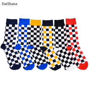 Harajuku Street Fashion Trendly Women Socks Black and White Squares Pattern Socks Men Novelty Skateboard Funny Cotton Socks