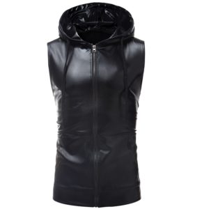 Hooded T Shirt Men 2018 Shiny Silver Metallic Zipper Night Club Tshirt Men Casual Harajuku Streetwear Tee Shirt Homme Camiseta
