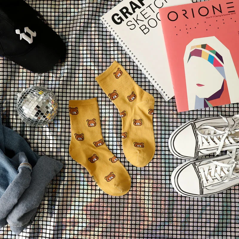 Funny bear women socks,with different colors,fashionable and novel,feel comfortable.
