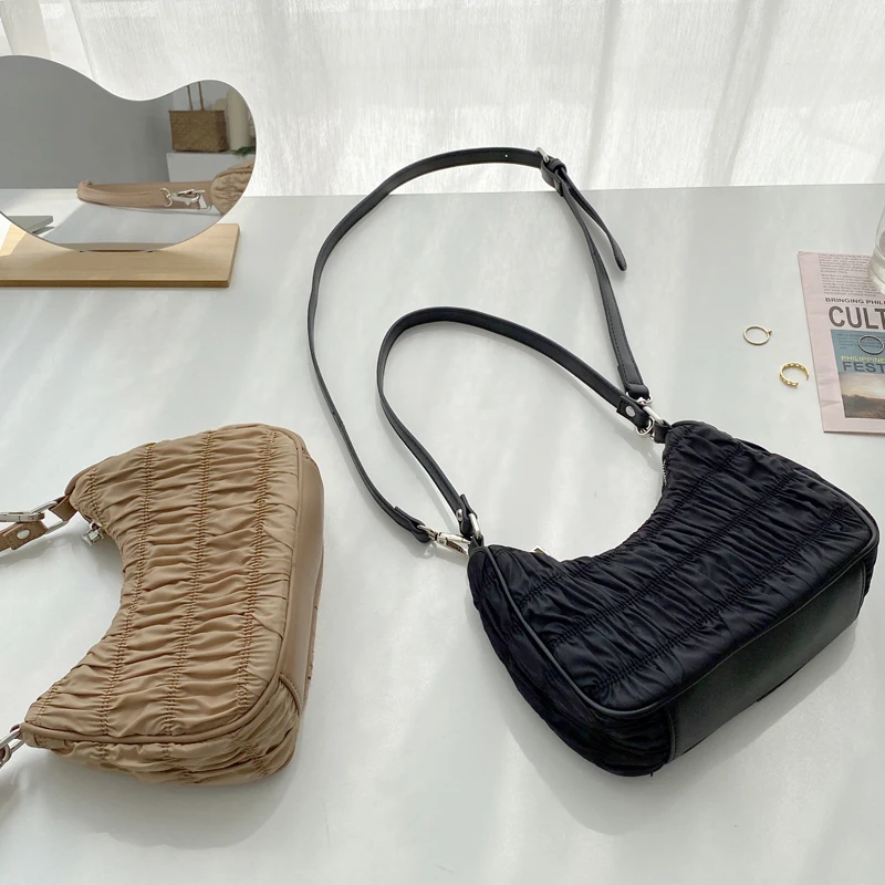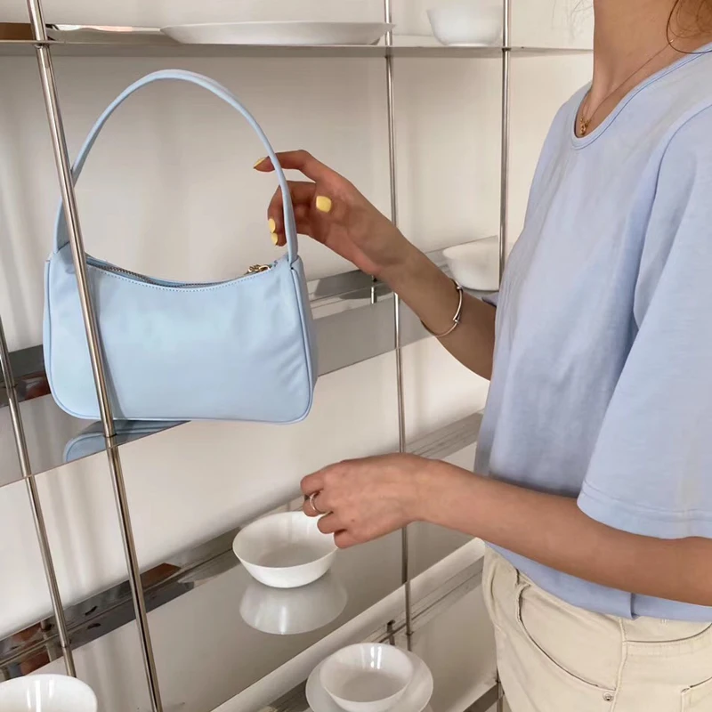 2020 Vintage Women Baguette Bag Female Handbags Ladies Small Shoulder Bags Nylon Zipper Oxter Bag Designer Axillary Bag Purse