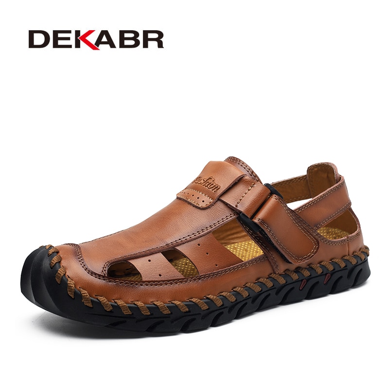 DEKABR Men's Shoes Men Soft Sandals Summer High Quality Leather Casual Beach Shoes Outdoor Fashion Sandals Plus Size 38~48