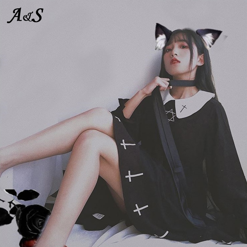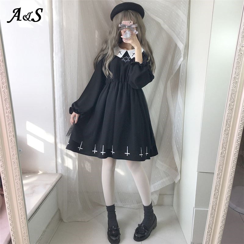 Gothic Lolita Dress Harajuku Fashion Cross Cosplay Female Dress Japanese Soft Sister Style Star Tulle Dress Cute Girl Streetwear