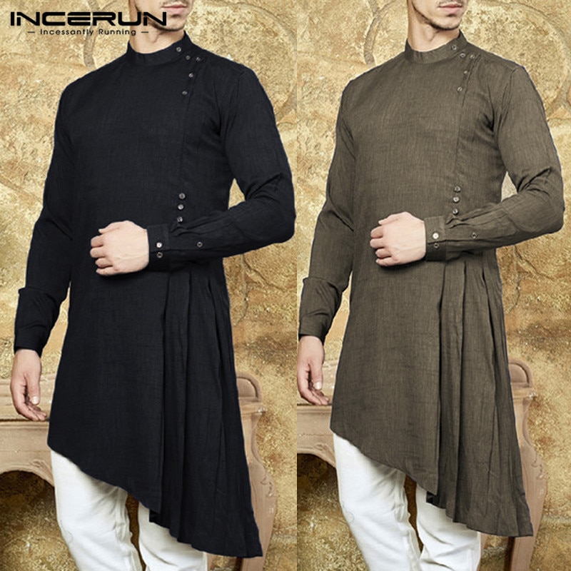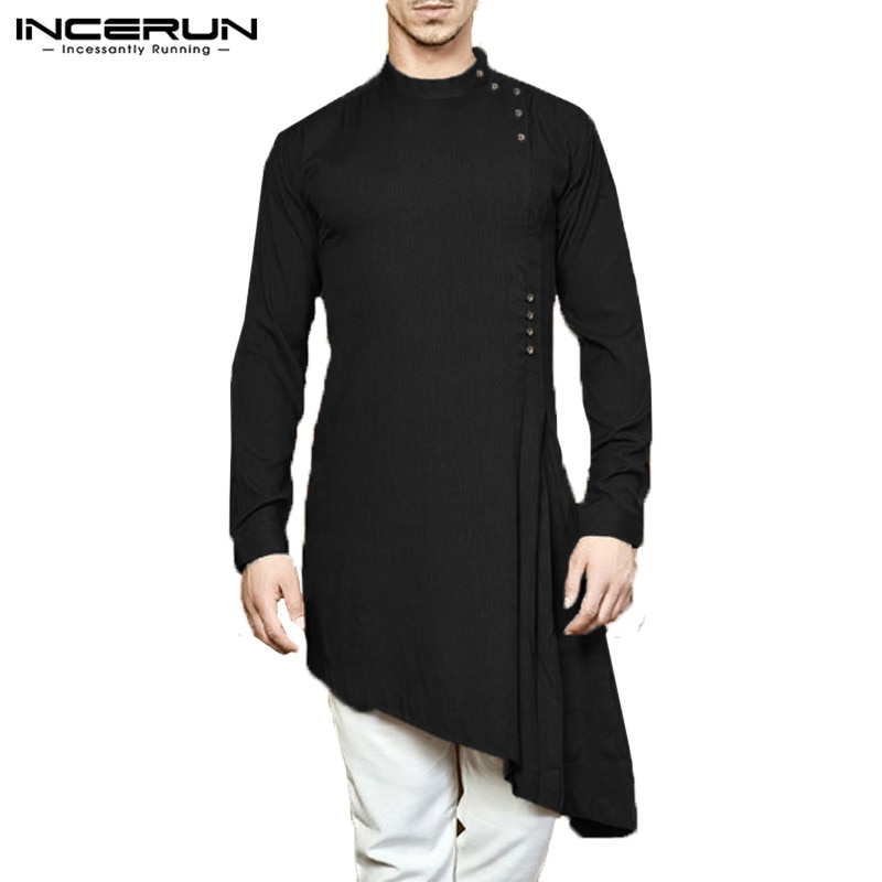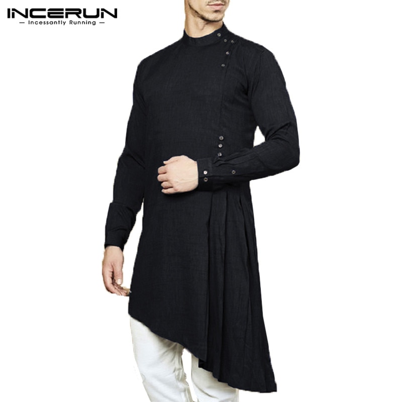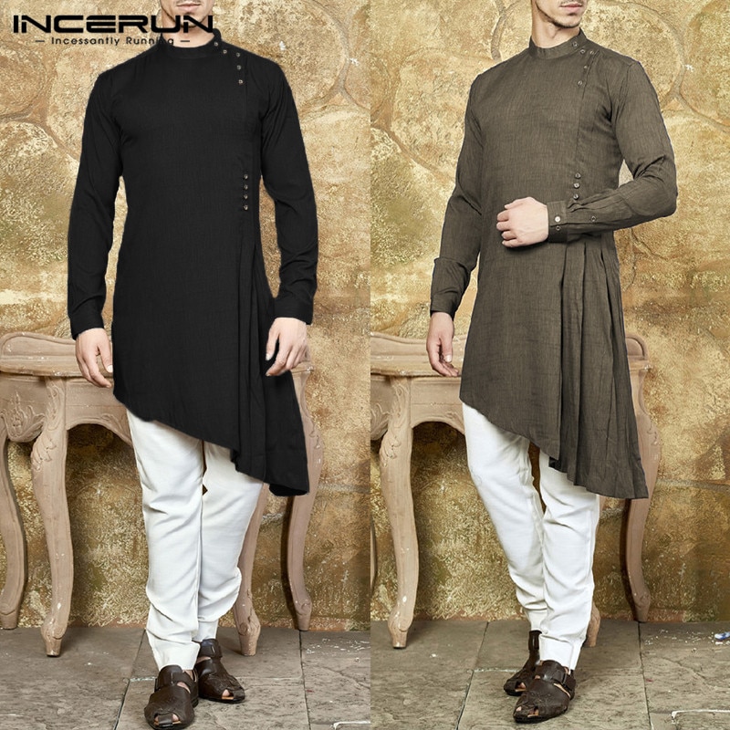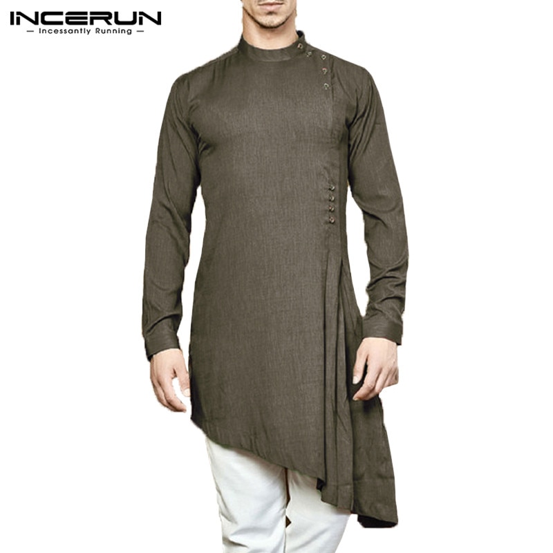 Men Shirt Indian Clothing Solid Color Long Sleeve Cotton Casual Tops Men Islamic Muslim Arab Kaftan Men Long Shirt 3XL INCERUN