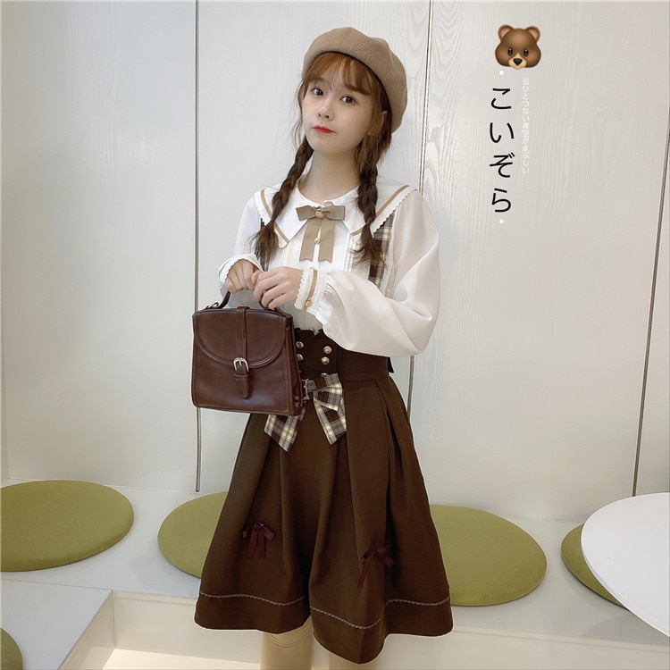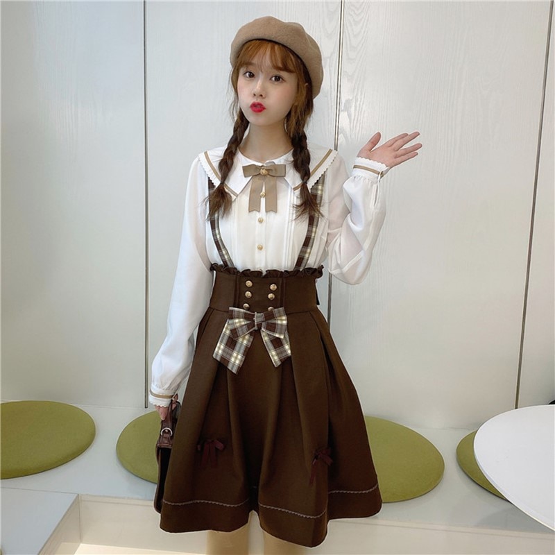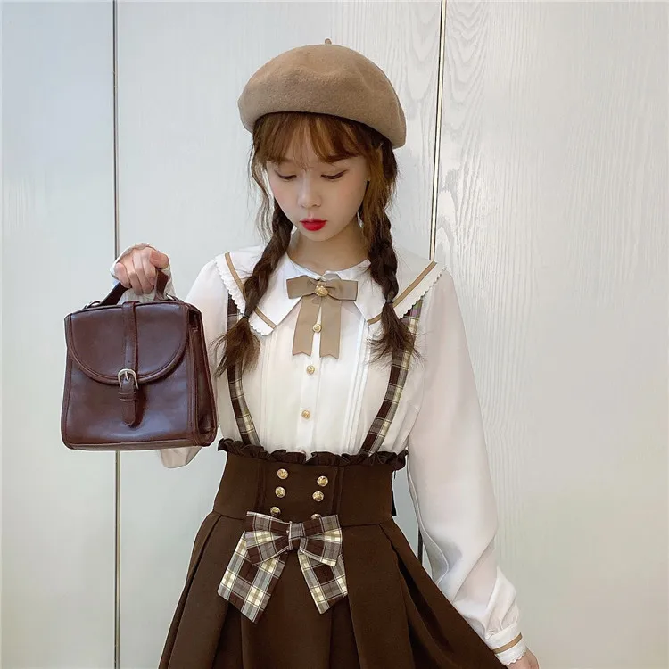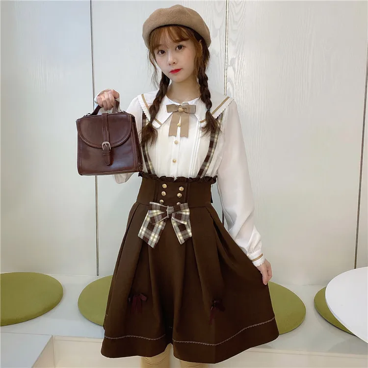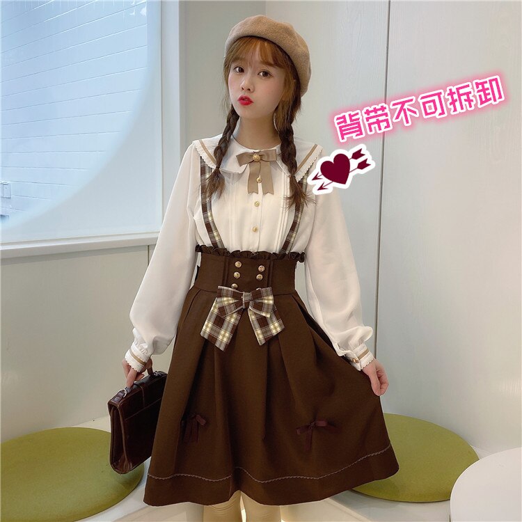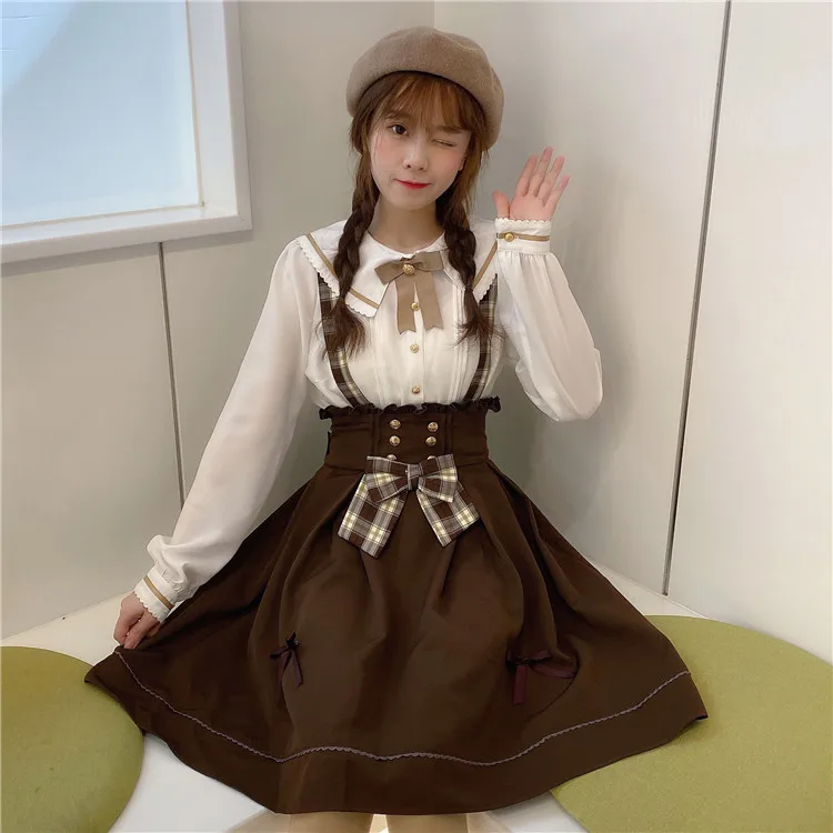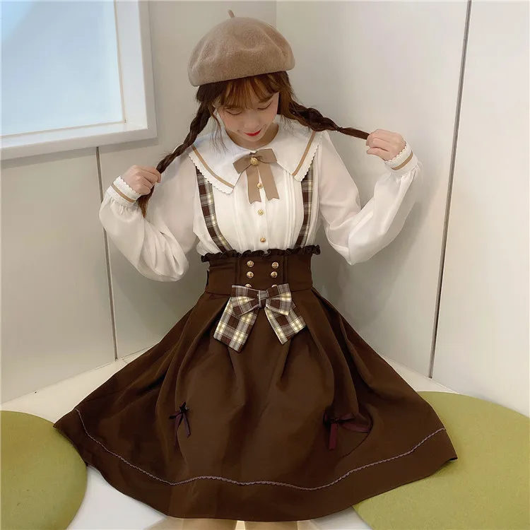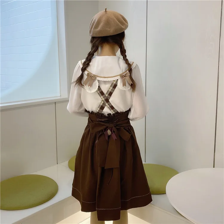 Preppy style student retro sweet lolita sets dress vintage lace bowknot peter pan collar high waist victorian dress kawaii girl