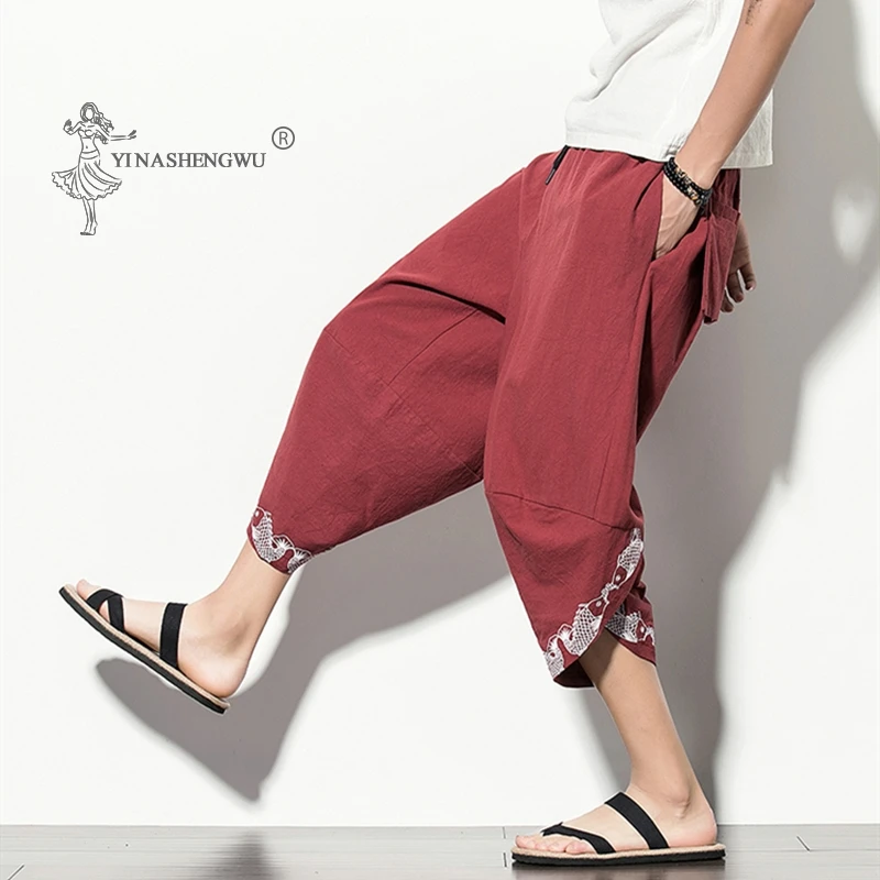 Summer Kimono New Trousers Retro Japanese Plus-sized Harem Printed Pants Chinese Shorts Japan Male Harajuku Yukata Asian Costume