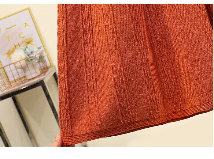 Be the first to review “Vintage Winter Women thick sweater skirt Elastic High Waist Pleated Midi knitted Skirt female solid Plus size elegant Skirts”
