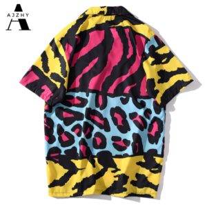 Leopard Printed Beach Tropical Hawaii Shirts Women Turn-down Collar Street Oversize Hip Hop Shirts Short Sleeve Shirts for Men