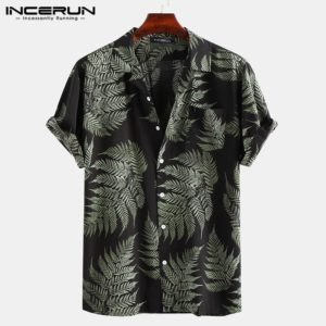 INCERUN Summer Avocado Print Men Shirt Turn-down Collar Short Sleeve Casual Beach Hawaiian Shirts Men Streetwear Camisa 2020 5XL
